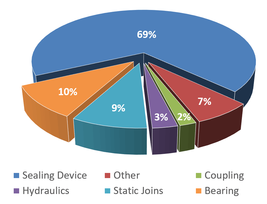 泵出現(xiàn)故障的原因有很多,但如下圖所示,超過三分之二的故障與密封裝置問題有關(guān)。隨著節(jié)約用水和減少需要處理的廢液數(shù)量的運動,該行業(yè)越來越依賴機械密封。隨著安裝人口的增長,直接由機械密封引起的泵故障的百分比也在增加。
