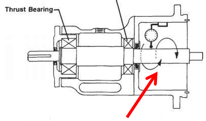 無論推力軸承類型如何,軸端游隙通常不應(yīng)超過 0.25 mm (.010”) TIR。