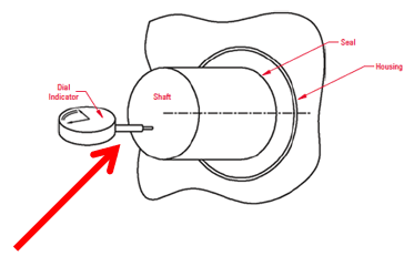 密封腔與軸中心線的垂直度應(yīng)約為每 25 毫米密封腔孔 0.015 毫米(每 1 英寸密封腔孔 0.0005 英寸)。注意:確保軸端間隙不影響讀數(shù)。