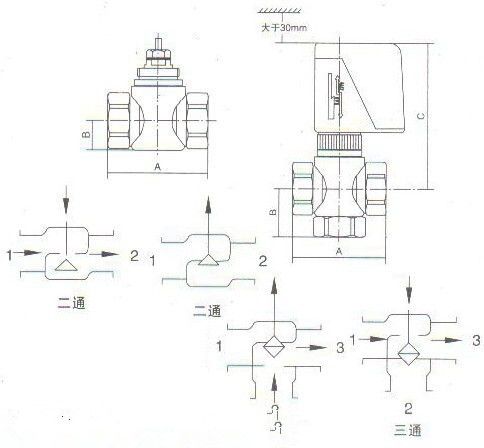 三、VA7010系列風(fēng)機(jī)盤管電動(dòng)閥結(jié)構(gòu)、尺寸及安裝示意圖: